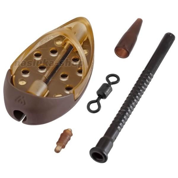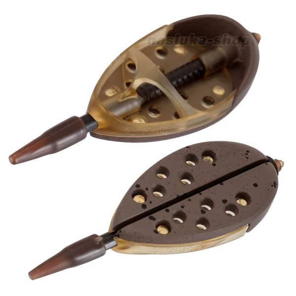 Всяка хранилка е снабдена със система QMF (Quick Method Feeder) за мигновена смяна, а формата с разположено в предната част утежнение осигурява стабилност при замятане и далечен кастинг.