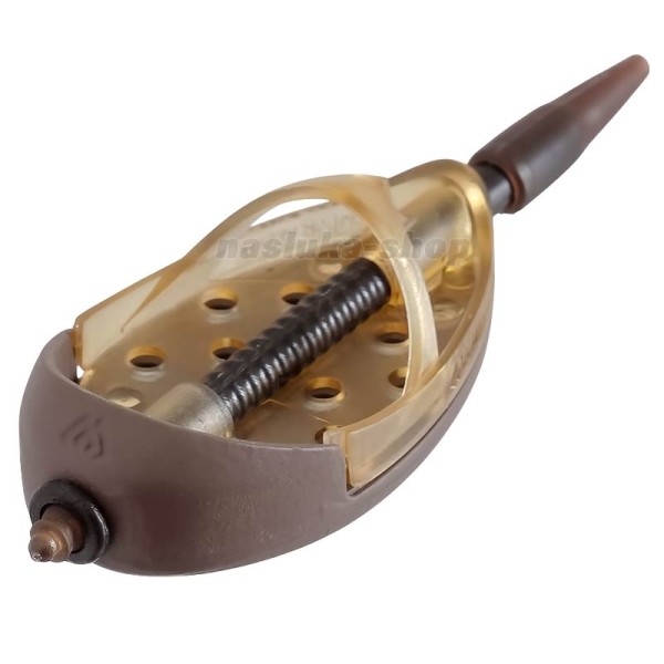 Конструкцията задържа захранката или пелетите стабилно, без разпадане при удар във водата.