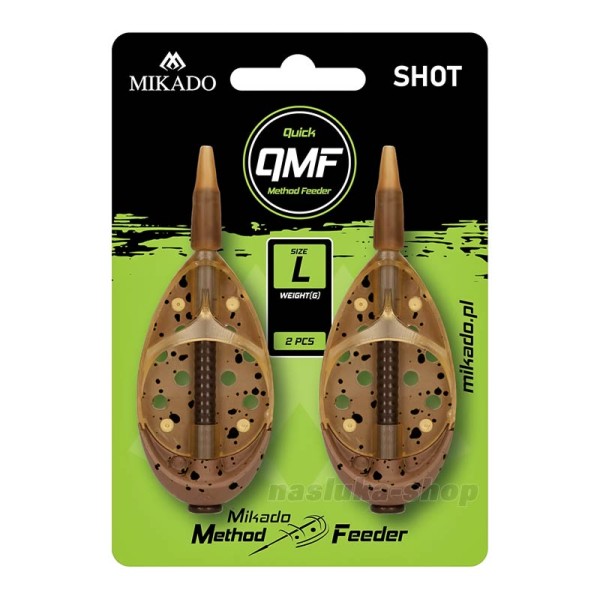 Mikado Method Feeder Shot QMF L - серия метод фидер хранилки с различно тегло и подходяща форма за бърз монтаж. Предлагат се по два броя в опаковка.