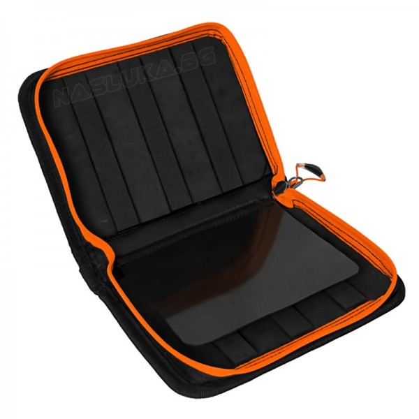 Калъфът е изработен от здрава EVA пяна, която предпазва примамките от повреда. Той е снабден с висококачествен цип в оранжев цвят, който е лесен за отваряне и затваряне.