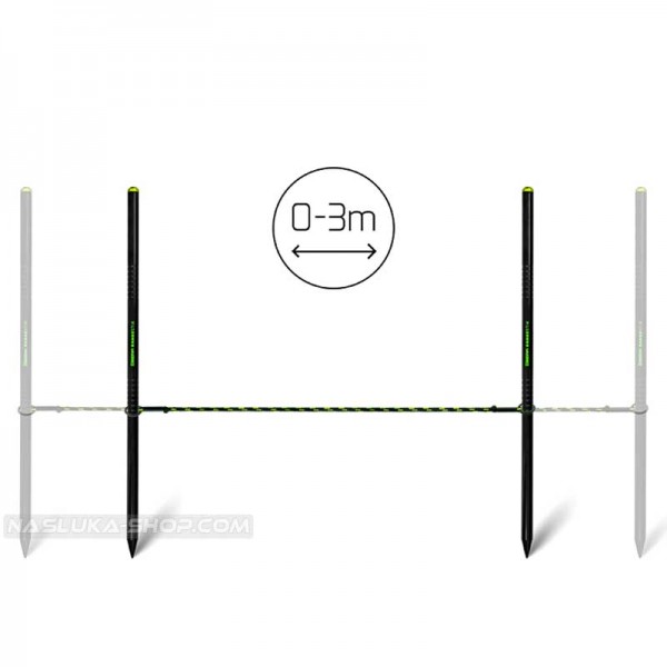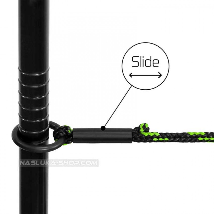 Комплектът се състои от две алуминиеви колчета с оребряване, което предотвратява изплъзването на въжето. Добавено е и въже с дължина 3 м, снабдено с халки.