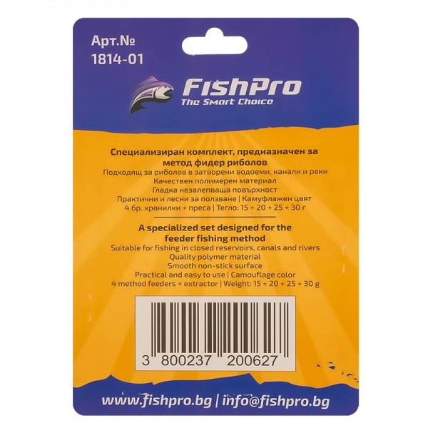 Задай въпрос относно Комплект 4 бр. фидер хранилки с преса FishPro Inline Method Basic 4+1, 35+40+50+60г