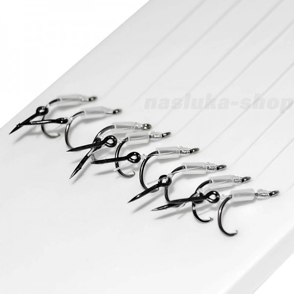 Комплектът включва 8 бр. предварително подготвени поводи с остри куки, висококачествено плетено влакно и специален 7 мм шип с контра за монтаж на стръв. Монофилното японско влакно Toray е изключително здраво и надеждно.