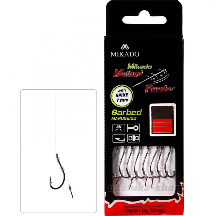 Вързани куки за метод фидер със 7мм шип Mikado MF Maruseigo Barbed, Mono, 8 бр.