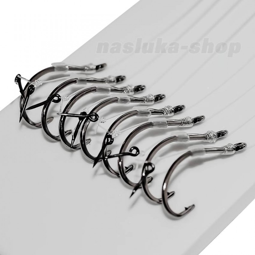 Комплектът включва 8 бр. предварително подготвени поводи с остри куки, висококачествено плетено влакно и специален 7 мм шип с контра за монтаж на стръв. Монофилното японско влакно Toray е изключително здраво и надеждно.