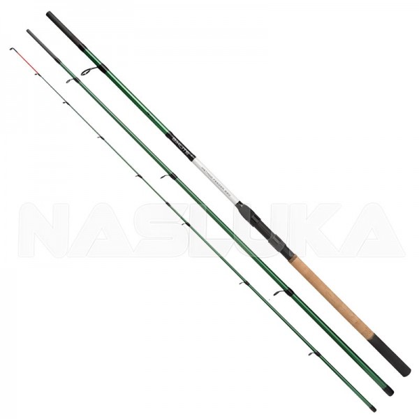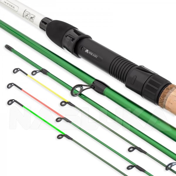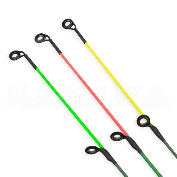 Фидер въдицата е в комплект с 3 върха (2 стъклопластови + един карбонов), чиято сензитивност позволява да регистрират успешно всяко кълване.