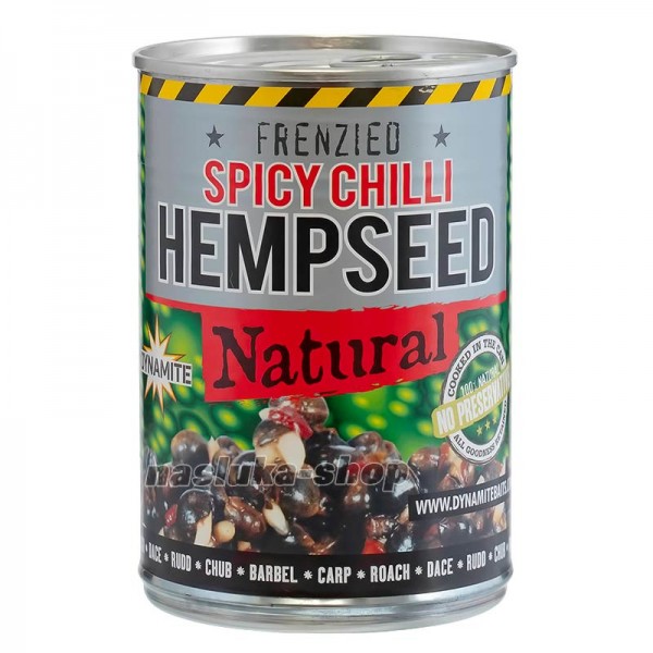 Dynamite Baits Frenzied Spicy Chilli Hempseed - консервиран лютив/пикантен коноп, приготвен по специална технология, която запазва ценните масла и аминокиселини в конопените семена.