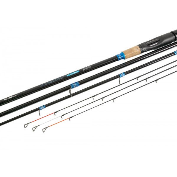Триколенна фидер пръчка с широко приложение, обусловено от съчетанието между класическа дължина – 3,60 м и акция от 40 до 120 грама. Дръжката представлява красиво съчетание между корк и EVA материал. Специфичният дизайн на макародържача носи предимства в две направление – невероятен комфорт при работа и директен контакт с бланката. Въдицата е оборудвана с 14 водача със SiC рингове. В комплекта се включват три карбонови върха с различна акция – 1.5, 2 и 3 oz, като по този начин се покриват разнообразни ситуации и условия на риболов. Върховете са в няколко цвята с цел удобство и лесно различаване.