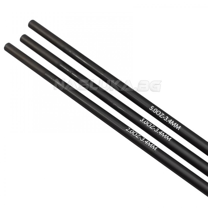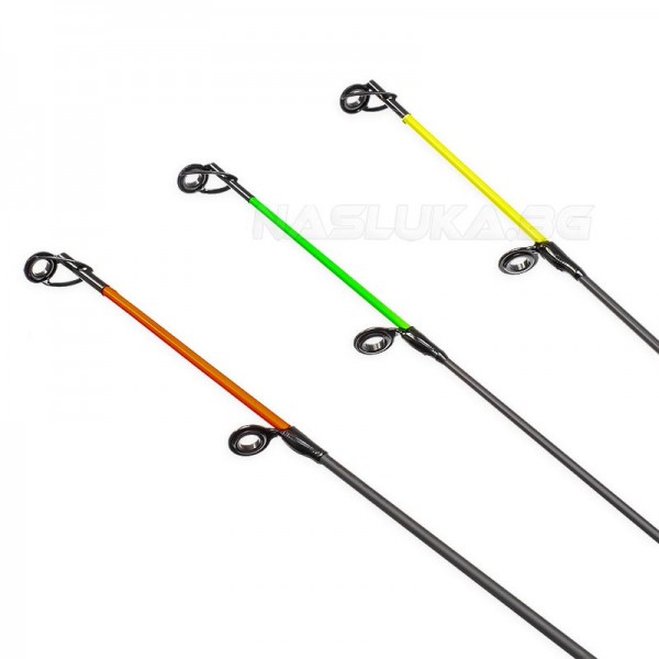 Въдицата е окомплектована с три карбонови фидер върха - 1.5oz , 2.0oz , 3.0z. Препоръчва се за риболов в реки, язовири и комерсиални водоеми.