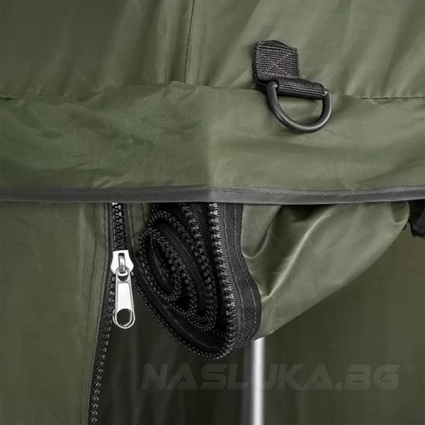 Чадър с напълно затваряща се странична стена, който е идеален избор за справяне с лошото време по време на вашите риболовни излети.