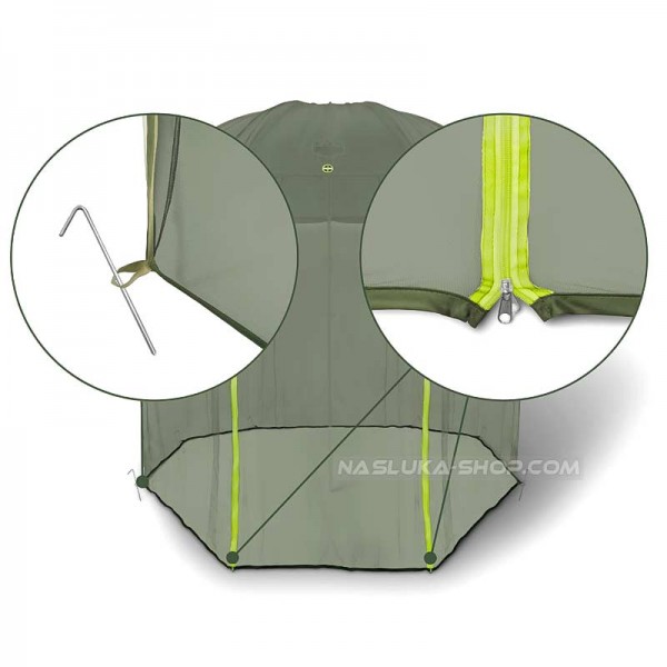 Входът е с два ципа с висока видимост за по-добра ориентация през нощта или при лоша видимост. Фината мрежа ще ви осигури най-добрата защита срещу неприятни насекоми.