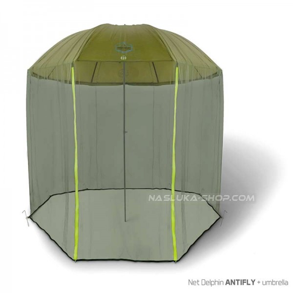 Мрежата против комари Delphin AntiFLY е със стандартен размер, който пасва на почти всички риболовни чадъри, предлагани на пазара.