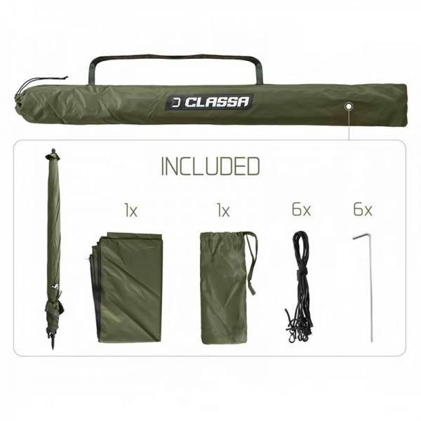 Delphin CLASSA е практичен чадър за риболов, подходящ за кратки излети както в слънчево, така и в дъждовно време. С диаметър на сенника 250 см и удължени странични части, той осигурява надеждна защита от атмосферни условия на брега.