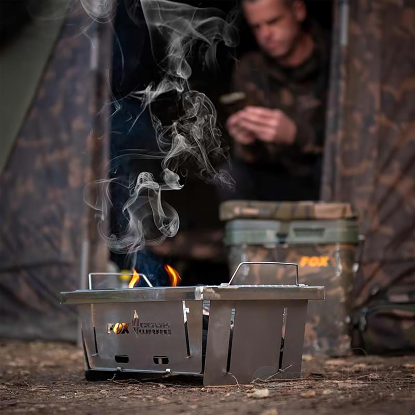 Fox Cookware Foldable BBQ е отличен избор за приготвяне на топла храна на брега на водоема или по време на дълги риболовни сесии.🏕️