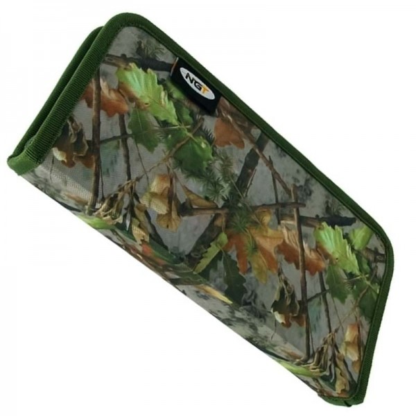 Класьорът за шарански монтажи NGT Stiff Rig Wallet Camo е надежден и практичен аксесоар, предназначен за организиране и съхранение на готови поводи и шаранджийски монтажи.