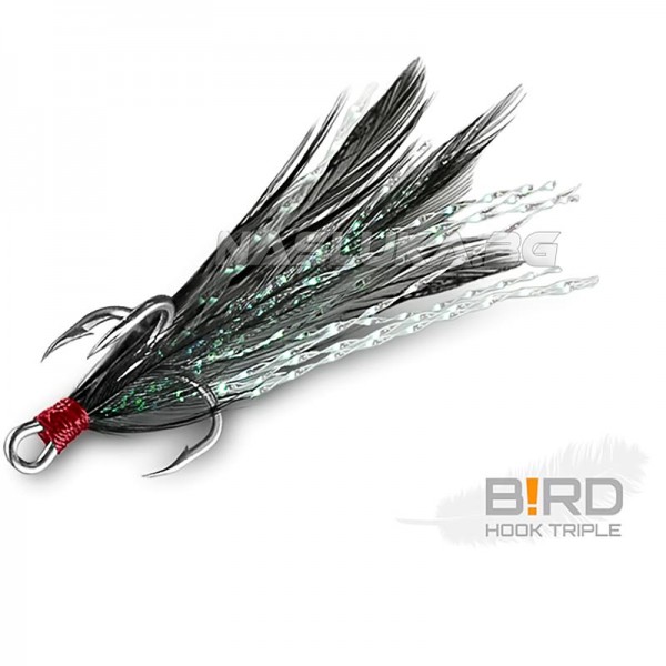 Най-голямото предимство на Delphin B!rd Triple Hook е в допълнителните пера, монтирани на всяка тройна кука. Те повишават атрактивността и правят всяка примамка по-ефективна.