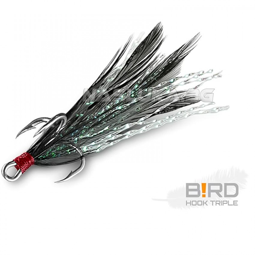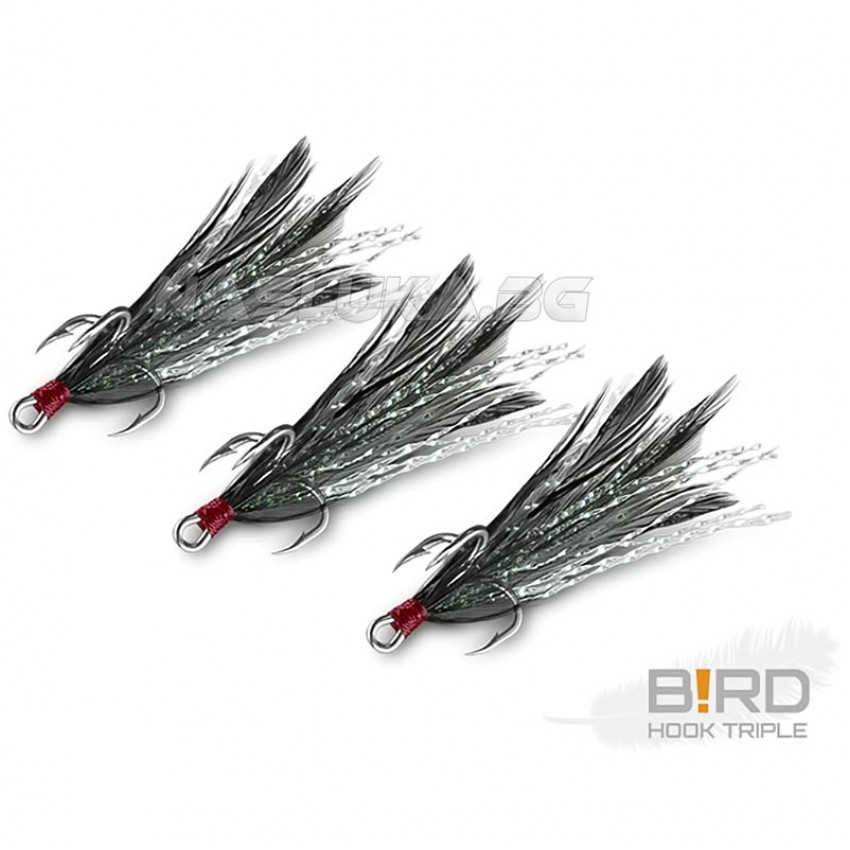 Тройни куки с пера Delphin B!rd Triple Hook - 3 бр. - Black