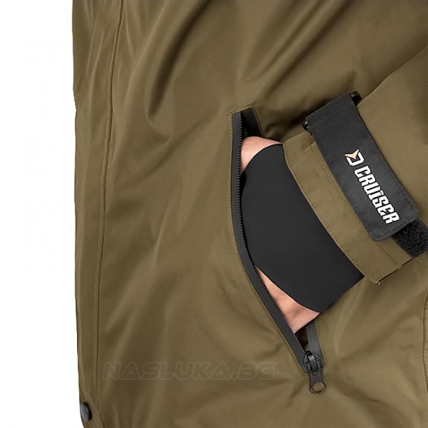 Външният слой на якето е изработен от водоустойчив материал с воден стълб от 5 000 мм, със залепени шевове, което осигурява пълна защита срещу вятър и вода. Тези характеристики ви предоставят комфорт и сигурност, когато се налага да излизате на открито - риболов, лов, къмпинг.