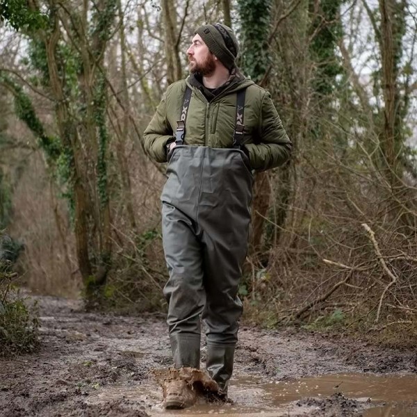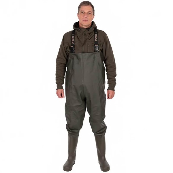 Fox HD Khaki Waders е здрав и удобен гащеризон, проектирани за риболовци, които не правят компромис с качеството дори при най-сурови условия. Отличава се с устойчива външна част от поливинилхлорид и меко полиестерно покритие отвътре - гаранция за свобода на движенията и комфорт при целодневен риболов.