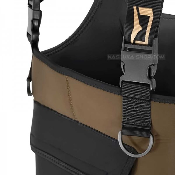 Гащеризонът е подсилен в областта на коленете с двоен неопренов слой. Регулируемите презрамки са снабдени с неопренова подплата за по-добър комфорт при целодневен риболовен излет.