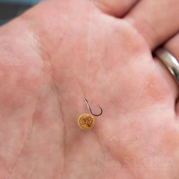 Химически заточеното острие е насочено леко навътре, което повишава процента на успешни засичания – ключово при капризни риби и плахи почуквания. Ъгълът на ухото и формата на куката са оптимизирани, като гарантират естествено поднасяне на стръвта и стабилно позициониране в устата на рибата.