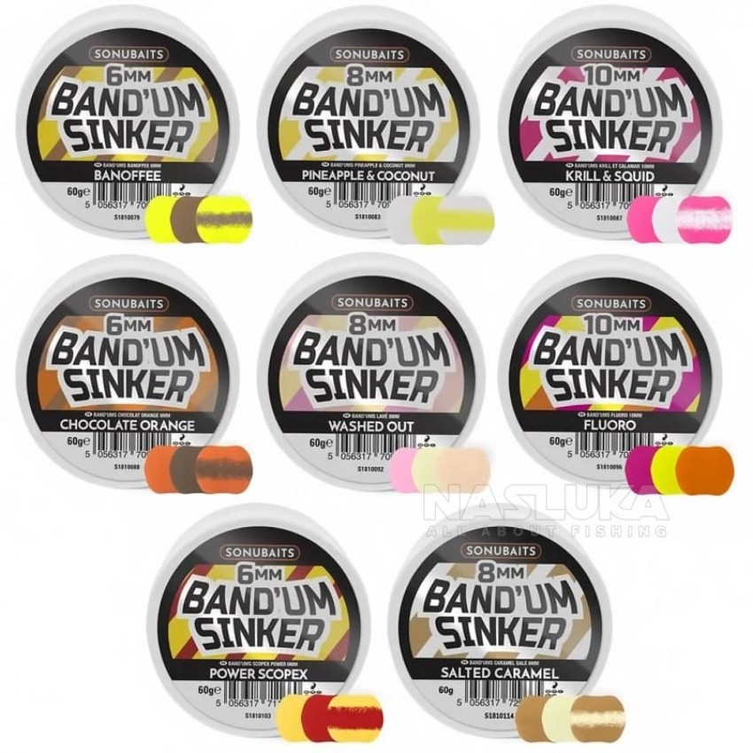 Band'Um Sinkers е изцяло нова гама от високоефективни потъващи дъмбели Sonubaits, които допълват серията Band'Um Wafters и са перфектната стръв за метод фидер, пелет фидер, а също и за мач риболов.