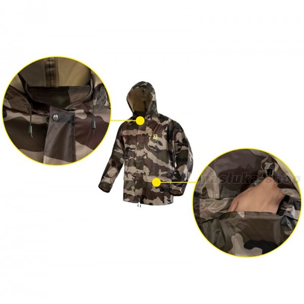 Delphin PROOF е надежден комплект от яке-дъждобран и панталон, предназначен да осигури защита и комфорт при неблагоприятни метеорологични условия. Този комплект е специално създаден за риболовци и хора, които обичат да прекарват време на открито, независимо от времето.
