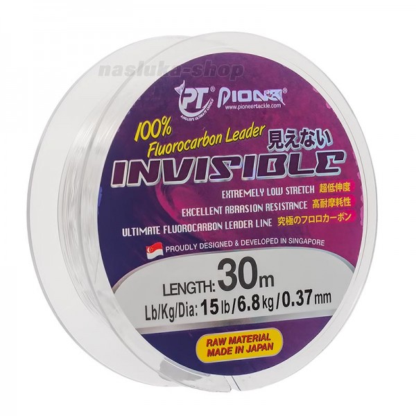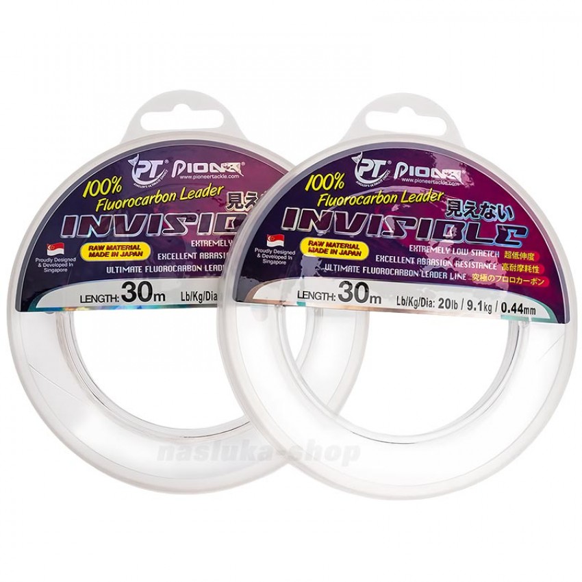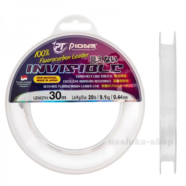 100% Pioneer Invisible Fluorocarbon Leader 30 м е висококачествено флуорокарбоново влакно, предназначено за изработка на поводи и монтажи, където дискретността и здравината са от ключово значение.