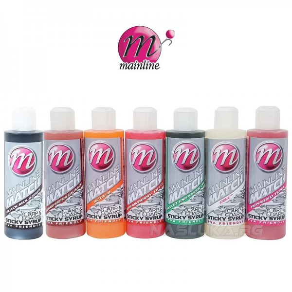 Mainline Match Sticky Syrup е гъст сироп за ароматизиране на пелети, пасти, дъмбели и топчета за фидер и метод фидер риболов.